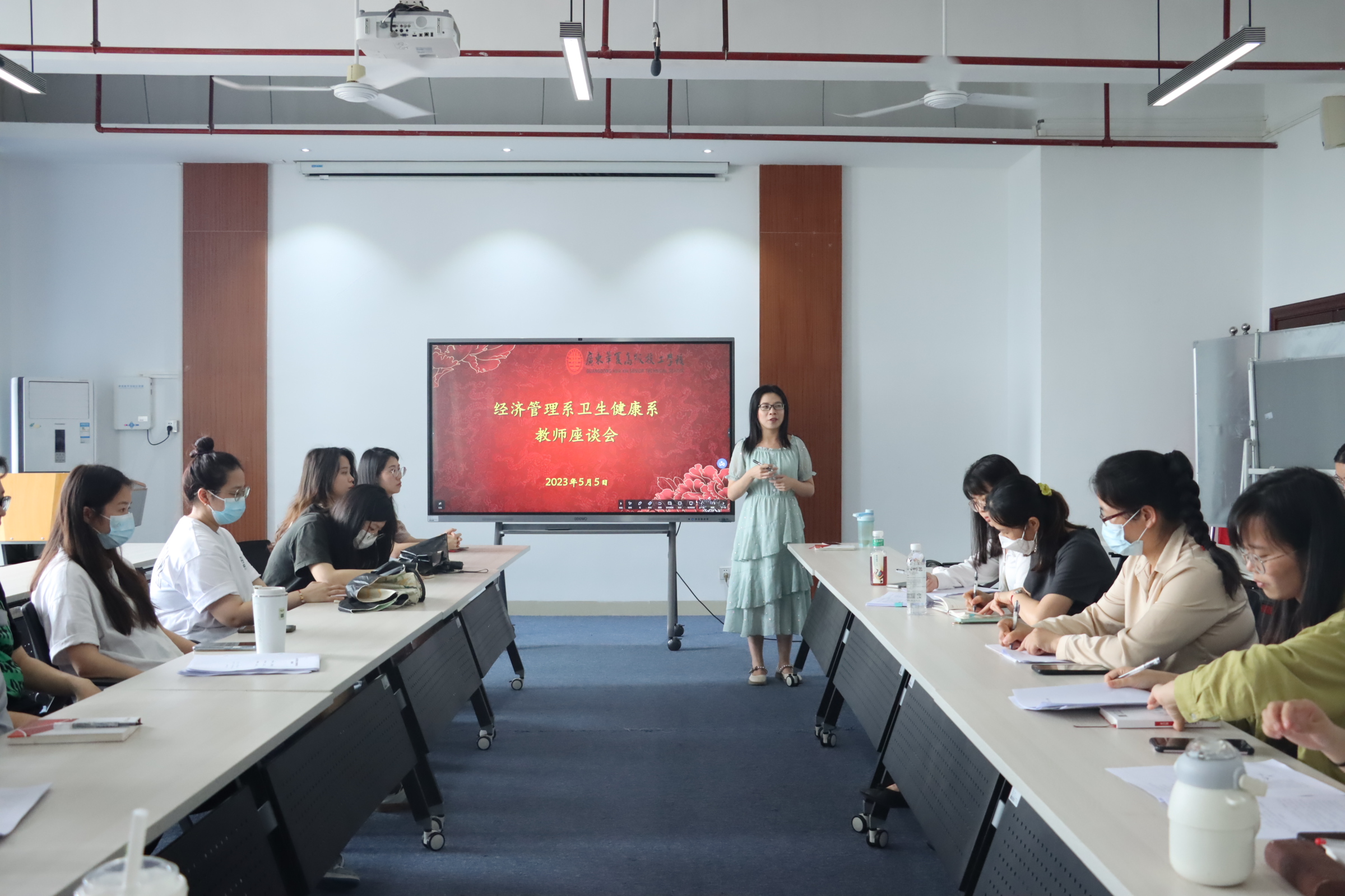 为了解教师所思、所惑,推动学校教职工队伍专业化发展,促使一批优秀的教职工在教育教学及学生管理实践中脱颖而出,5月5日下午15时,经管卫健系在教师发展中心举办教职工座谈会,座谈会邀请了教研室副科长唐小玲、督导质管办曹玲以及经管卫健系全体教师及辅导员参与,会议由系主任助理冼洁主持。