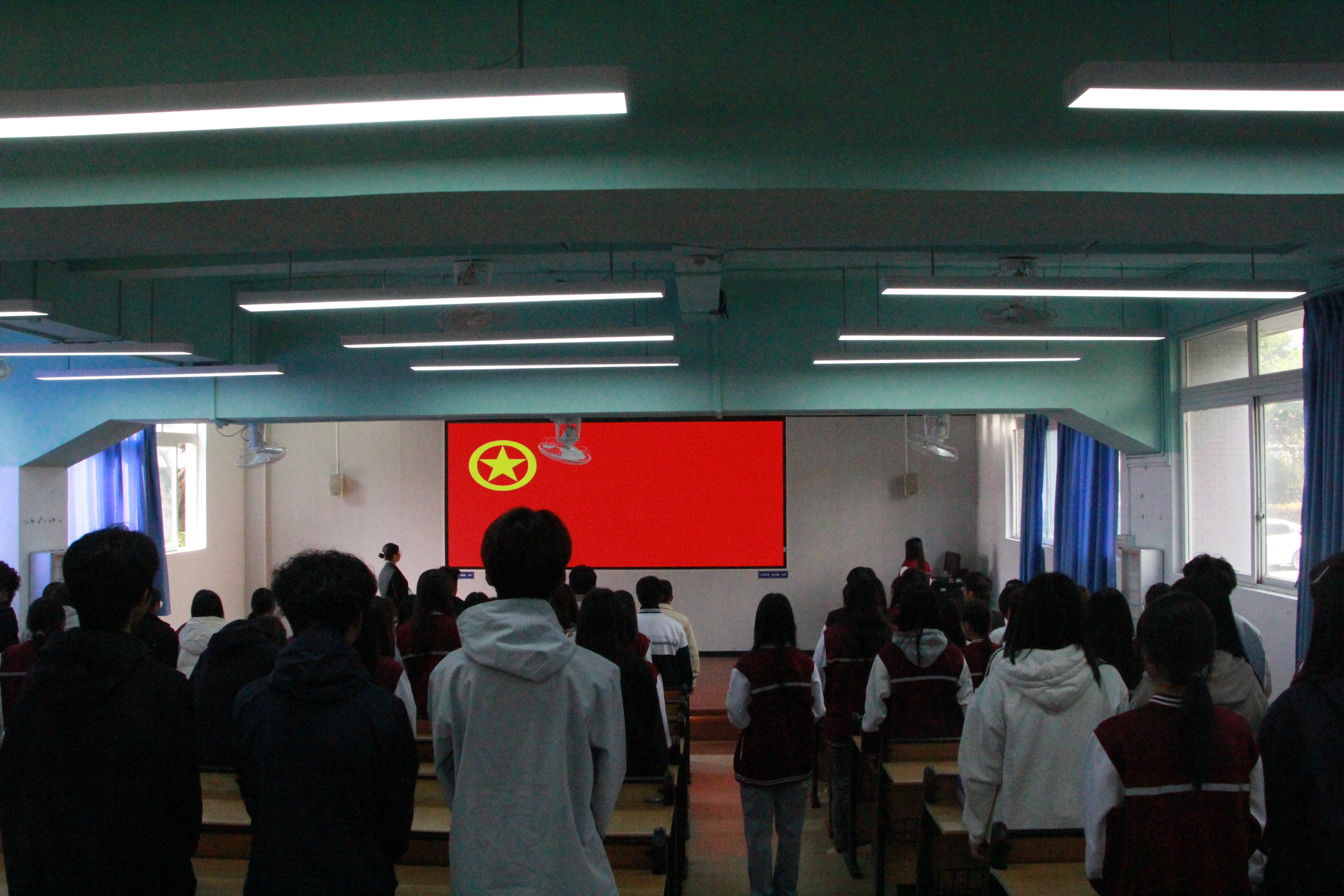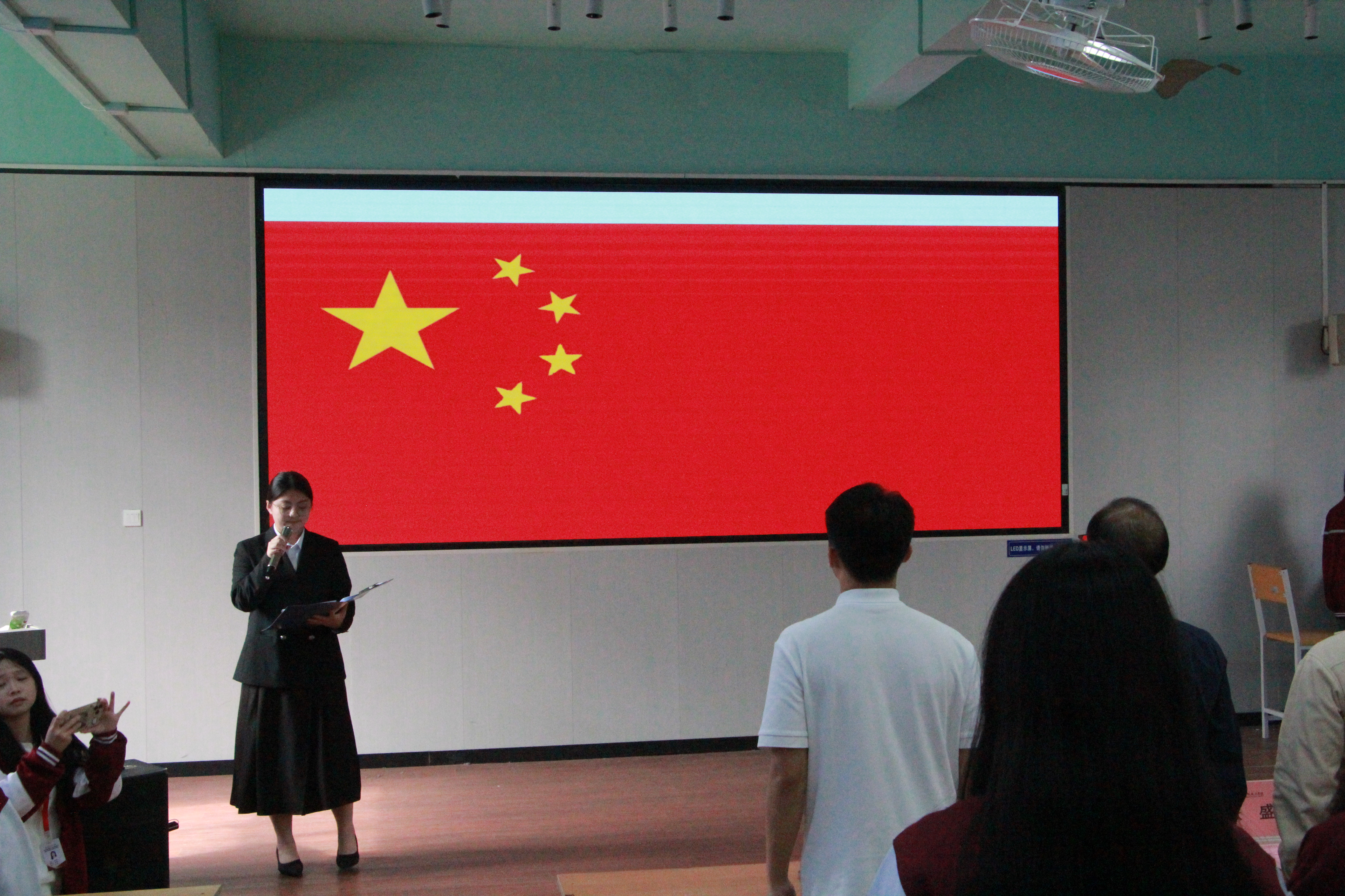在庄严的国歌声中拉开帷幕,全体参会人员起立奏唱国歌,肃穆的氛围彰显着青年学子的家国情怀与责任担当