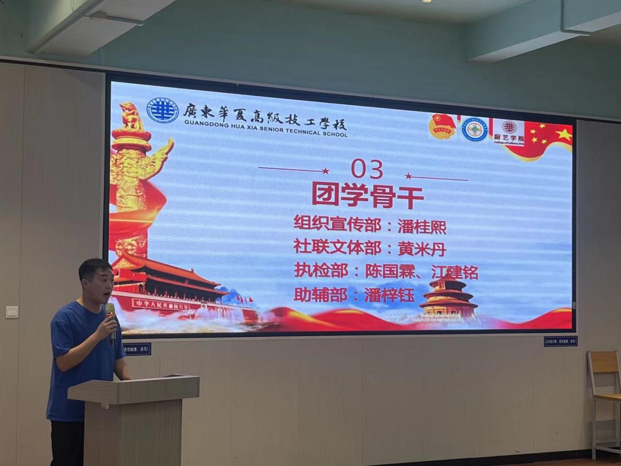 组织宣传部部长潘桂熙在发言中,向莅临大会的领导、老师致敬,热烈欢迎2025级新同学,介绍了团总支学生会各部门的职能,承诺学生干部会以身作则做好服务、帮助新同学,最后感谢领导老师的指导并祝愿新同学在校园收获成长。