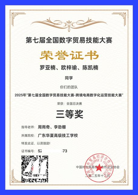 近日,由中国对外贸易经济合作企业协会主办的第七届全国数字贸易技能大赛跨境电商数字化运营技能大赛圆满落幕。本次大赛吸引全国264所院校的4437支学生队伍及384名教师参赛,总计13695人同台竞技,赛事规模与竞争强度十足。我校电商专业陈勇生、李劲棚、周雨奇、胡伟四位老师带领的两支学生队伍不负众望,从众多参赛队伍中脱颖而出,双双斩获全国三等奖的优异成绩,教师朱小娟表现突出,凭借扎实的专业素养和赛事参与中的出色表现,荣获个人三等奖,为学校赢得了集体与个人的双重荣誉!