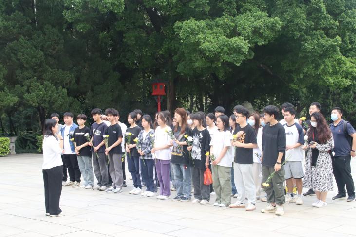 整个活动庄严肃穆,并然有序。活动开始,何婉婷老师给师生代表们讲述了黄花岗七十二烈士的英雄事迹:“1911年4月27日,黄兴率领中国同盟会革命党先锋队一百多人在广州发动起义,革命党人持短枪背炸弹,抱着必死决心冲向清朝两广总督署。与清军激战一昼夜后,终因寡不敌众,弹尽粮绝而惨遭失败。革命党人伤亡惨重,烈士遗骸暴尸街头。同盟会会员潘达微冒死将72具烈士遗骸收葬于广州白云山南麓的红花岗。此后,潘达微将红花岗改名为黄花岗,黄花寓意菊花,象征节烈,“黄花岗七十二烈士”由此得名。当年11月,广州人民大规模公祭烈士,之后爱国人士和华侨捐款兴建陵园,改名黄花岗。”