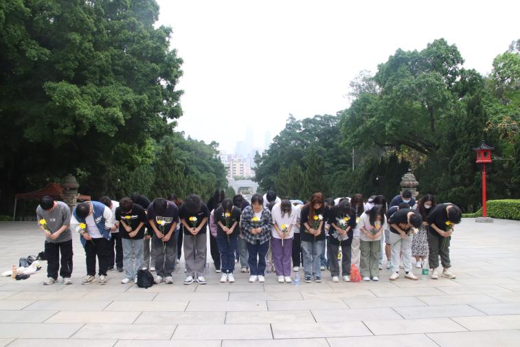 全体人员鞠躬并默哀,寄托心中对烈士的哀思。
